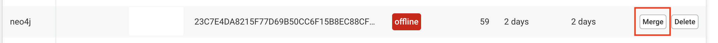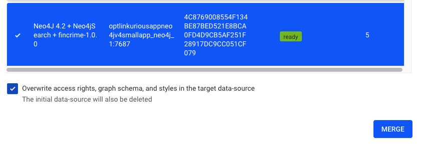 The data-source to be merged should be the old data-source now marked as offline because it has been replaced with the freshly generated data-source.