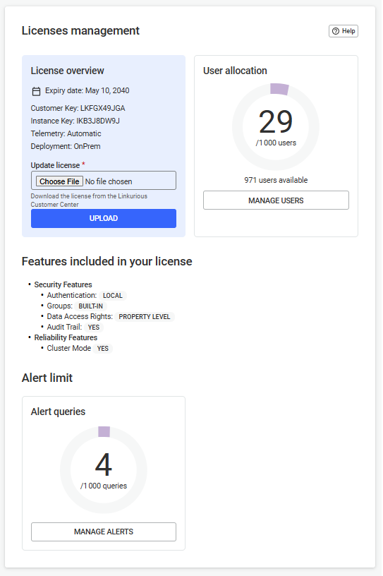 When running Linkurious Enterprise for the first time, you are asked to provide a valid license. You can download your license file from our Customer center.