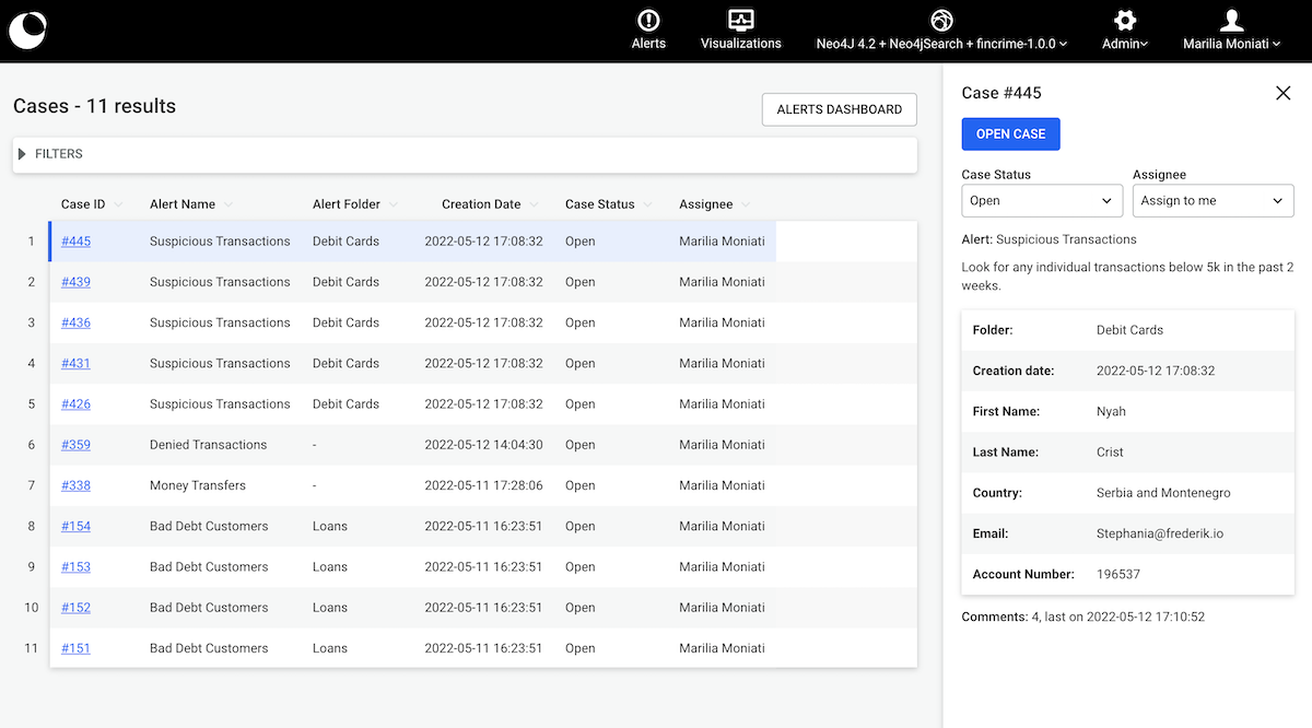 Within the list of cases, you can assign them to users that have the right to process the alert.