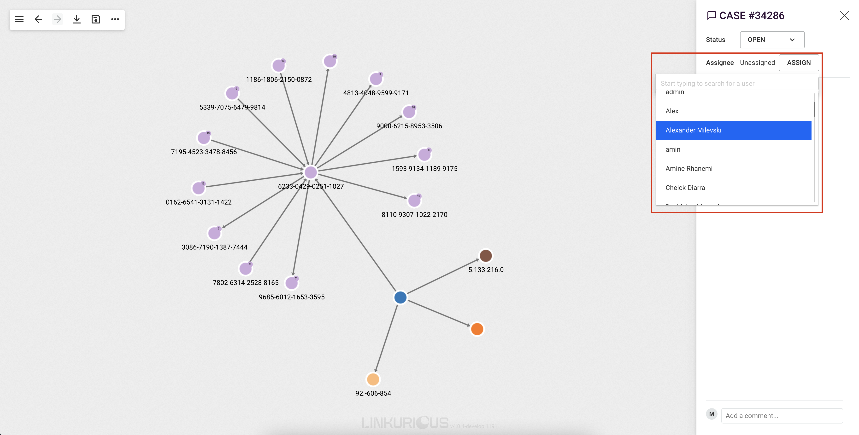 Within the list of cases, you can assign them to users that have the right to process the alert.