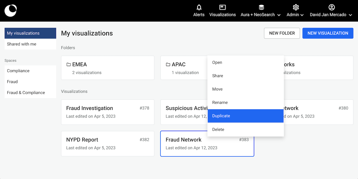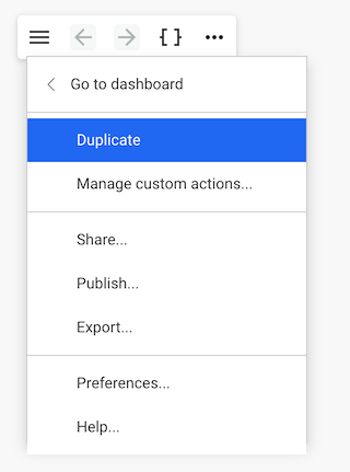 It is also possible to duplicate a saved visualization from the workspace via the "Duplicate" function in the Menu:
