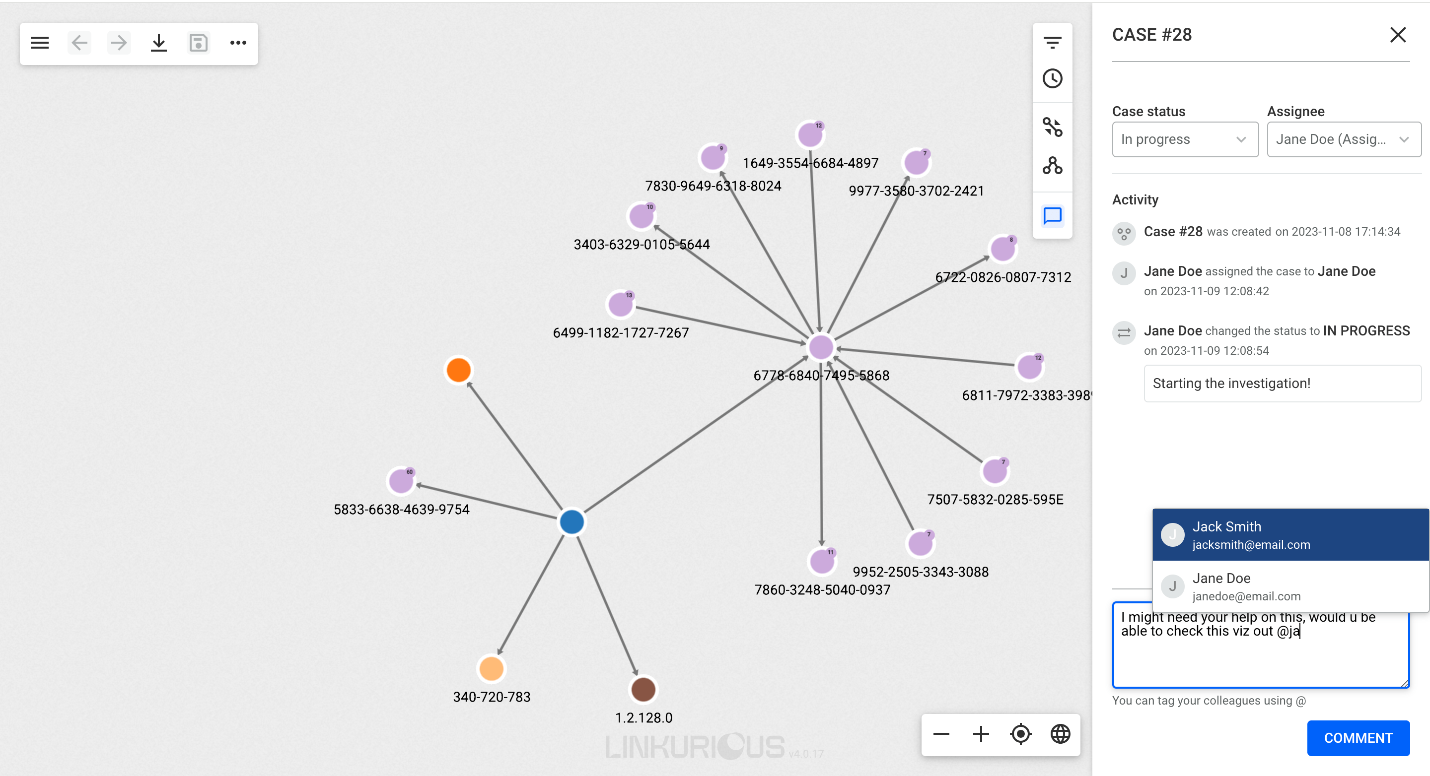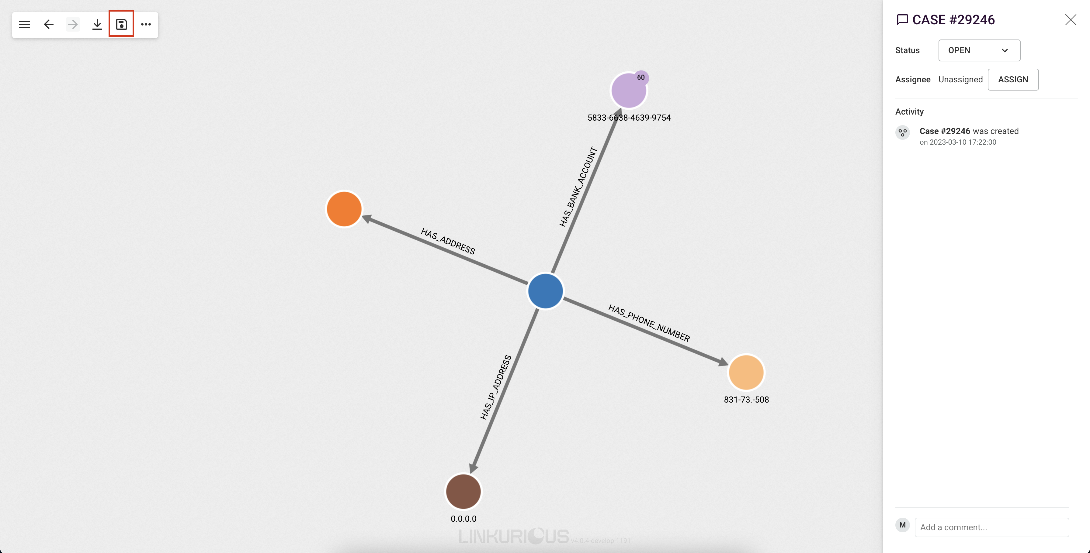 You can investigate a case by clicking on the case's id in the case list or the unified case list. By doing so, you will be redirected to the graph of said case where you can: