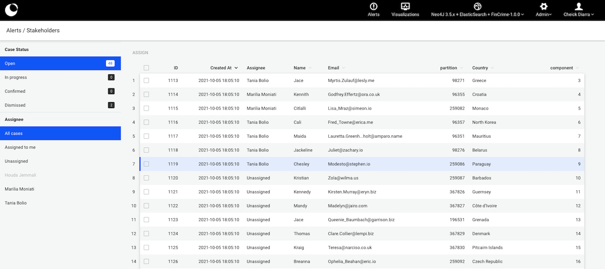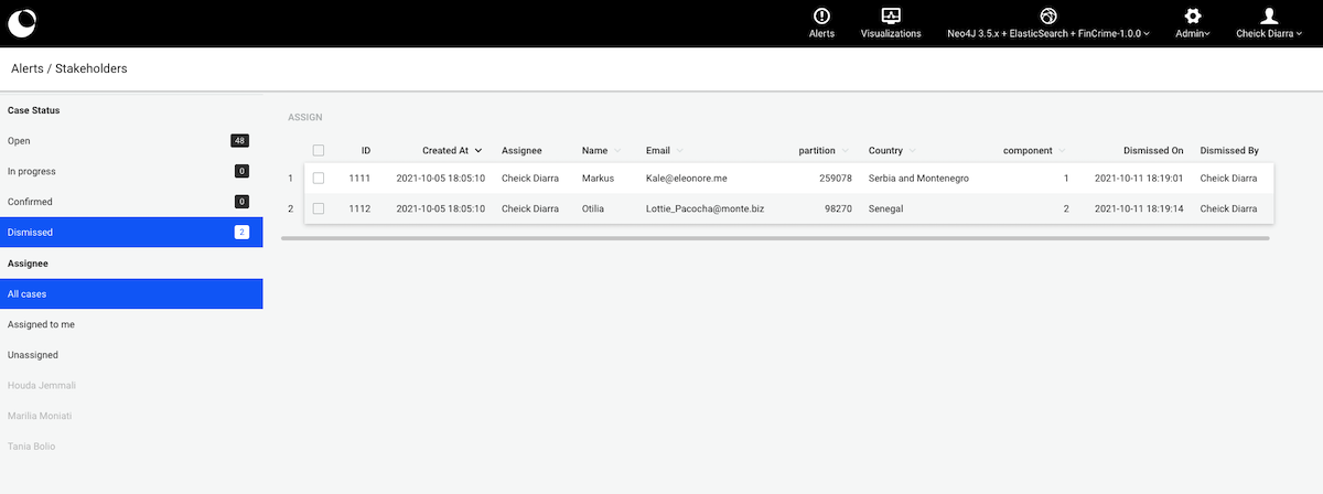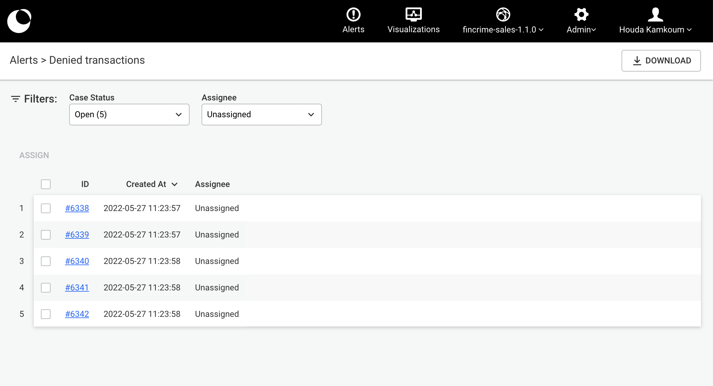 Within the list of cases, you can assign them to users that have the right to process the alert.