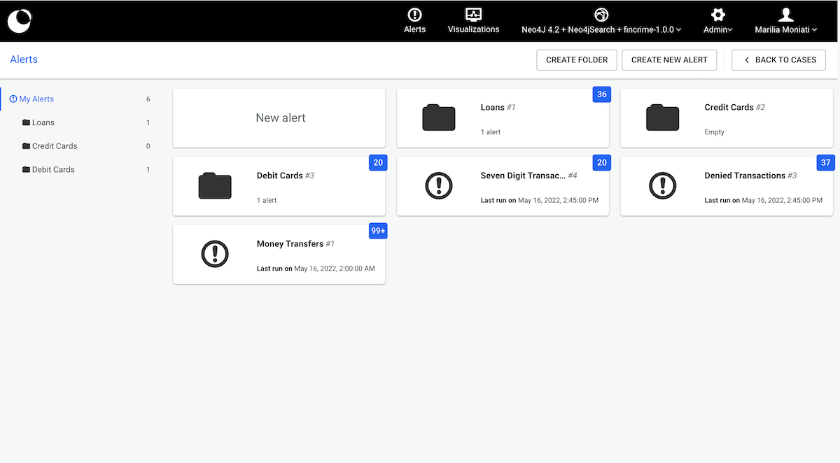 The blue badge displayed above alerts and folders is there to inform users on cases requiring attention (cases with the status: open and assignee: unassigned).