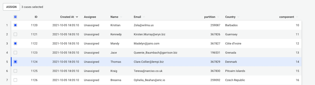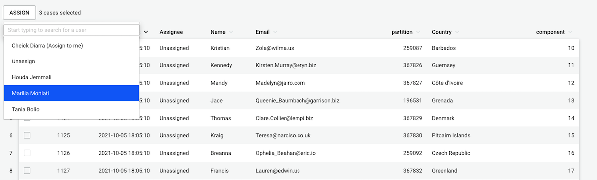 Once cases are selected, you can assign them to a single user by clicking on the button "Assign".
