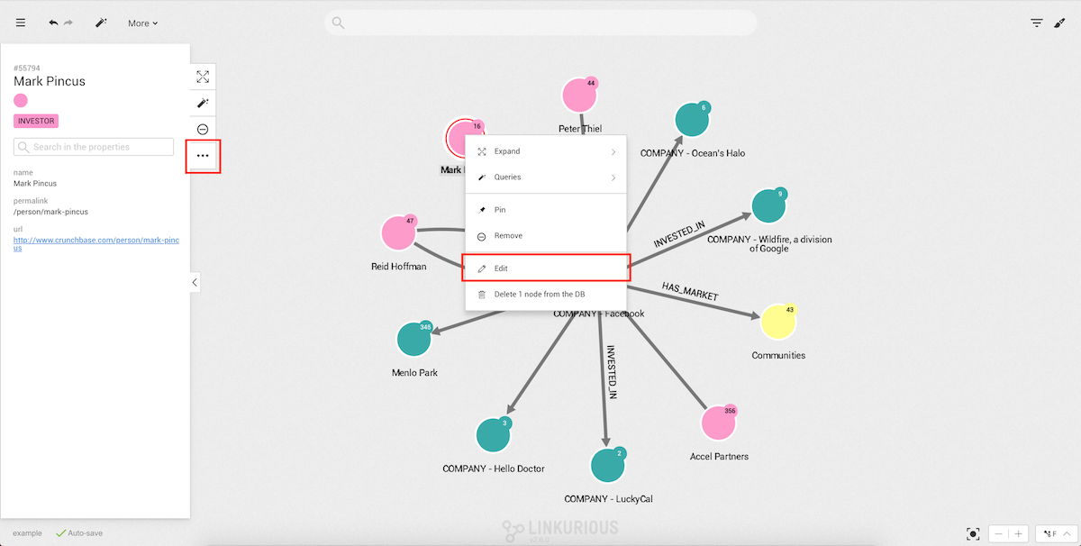 If we select a node or an edge, we can edit it by right-clicking on it or clicking on