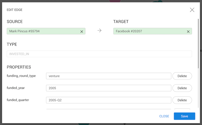 Editing a node (resp. edge) allows for 3 kinds of actions: