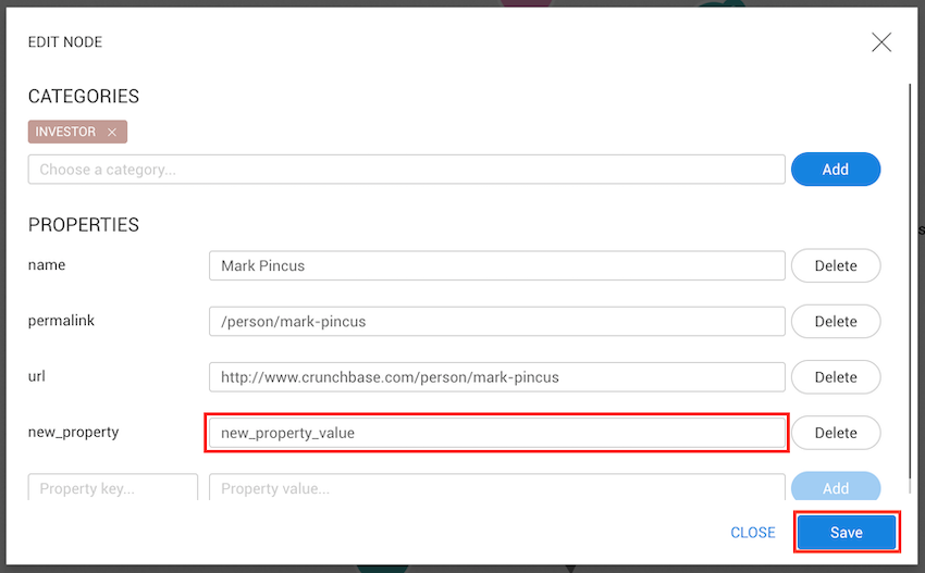 To add a new property, we need to fill in the name of the property and provide a value new_property,