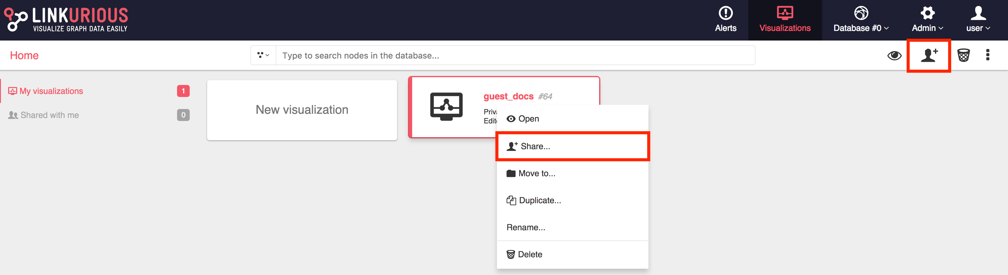 - Read-only: the people you share a visualization with won't be able to modify the data in the database, and your visualizations will remain unchanged whatever they do in the Guest mode workspace