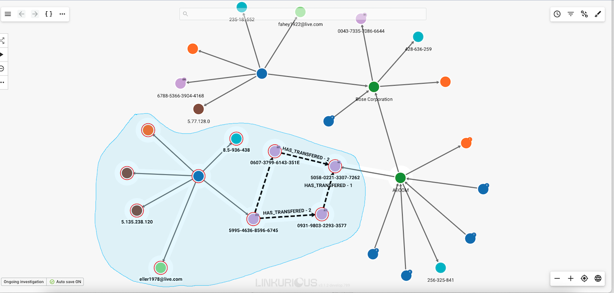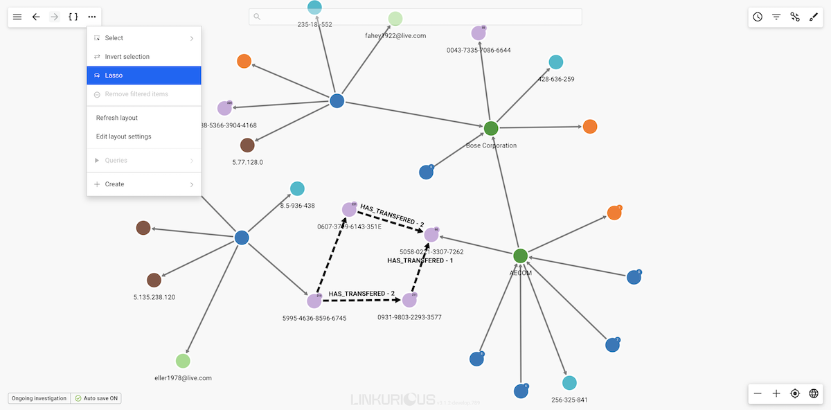 It is possible to select the nodes within a particular area of your visualization. For that, Linkurious Enterprise provides a lasso.