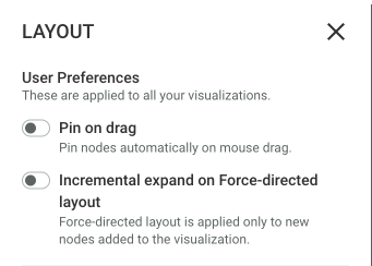 Note that "Incremental expand" and "Pin on drag" are user preferences which are going to be applied to all your visualizations.
