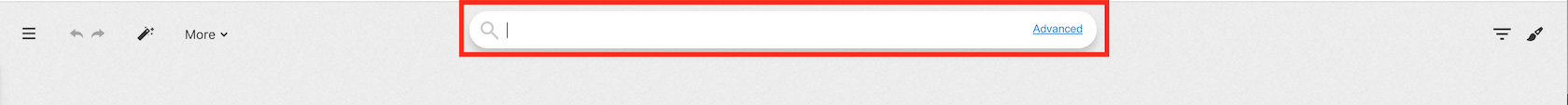 The search bar in the Workspace provides an Advanced Search option not available through the Quick Search Bar of the Visualizations Dashboard. We can thus reduce the results to the category we are interested in. Those options are described in the Advanced search section.