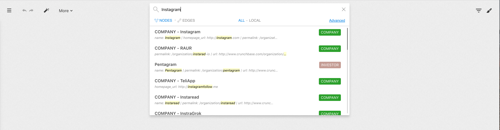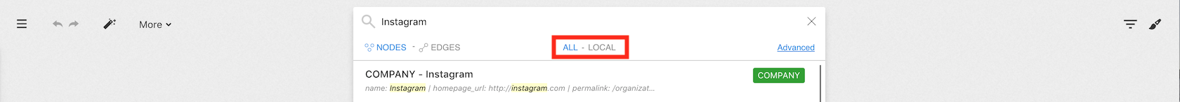 the nodes in the visualization simply by switching from ALL to LOCAL