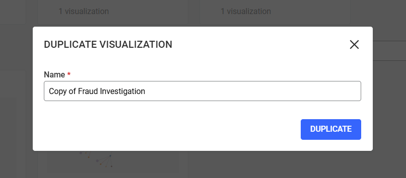 It is also possible to duplicate a saved visualization from the workspace via the "Duplicate" function in the Menu: