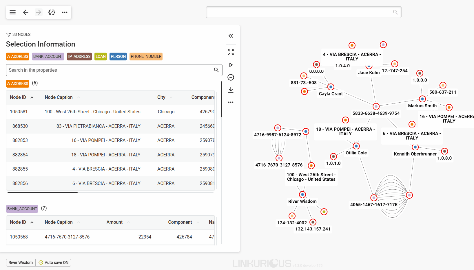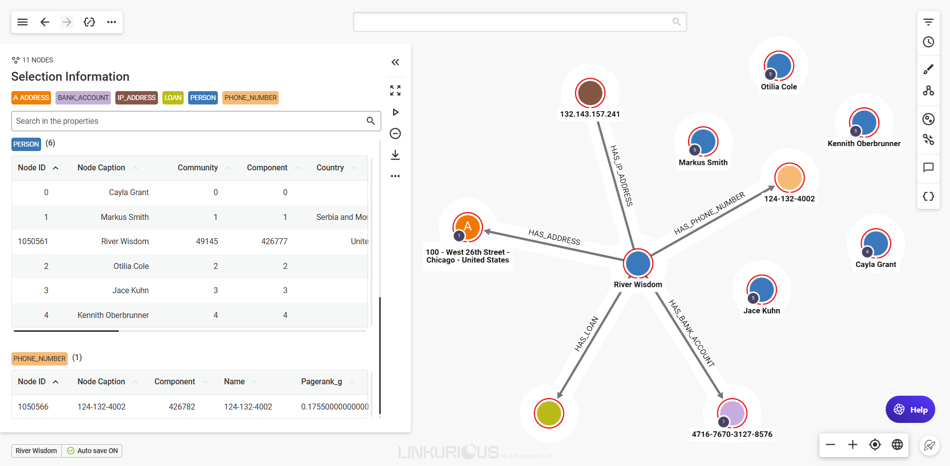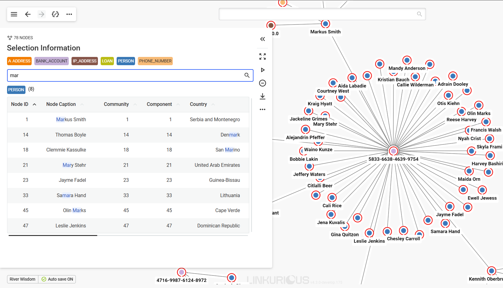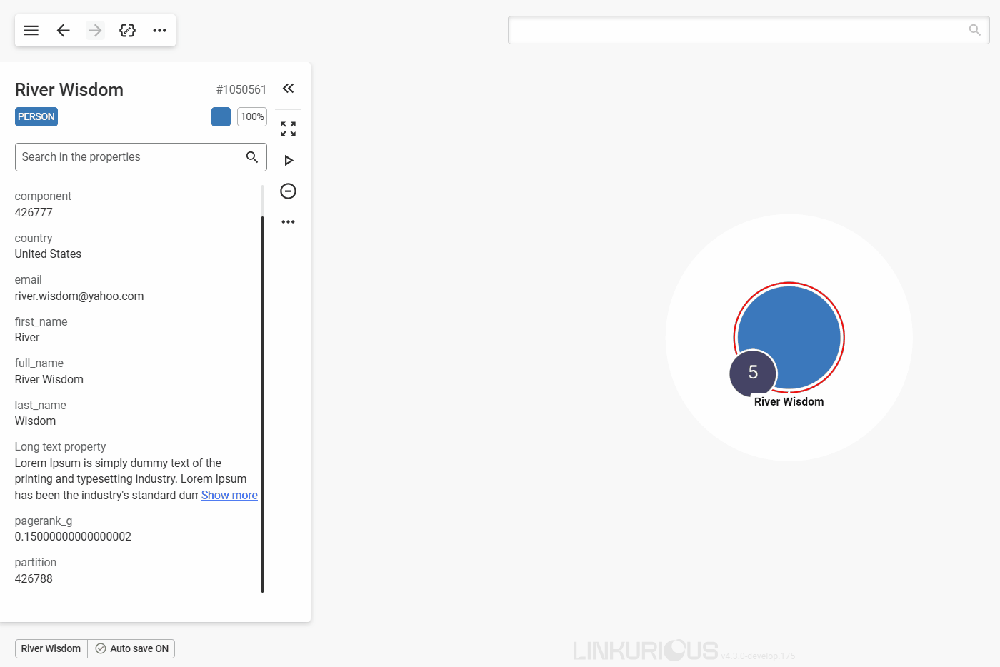 Now we can see 5 other nodes that are connected to River Wisdom through edges.